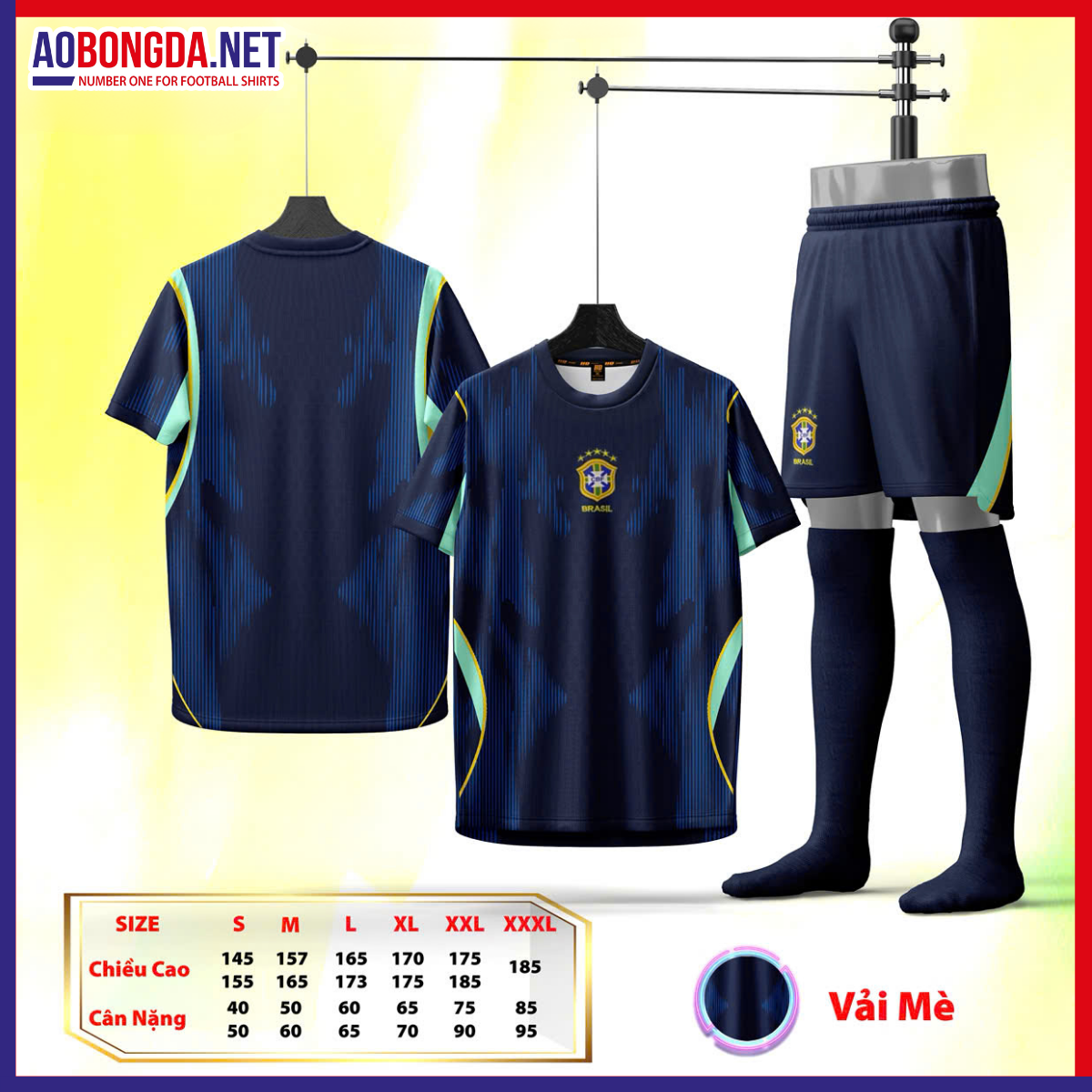 Áo Bóng Đá Đội Tuyển Brazil Xanh Đen 2026 - 2027 mang phong cách tái hiện tinh thần chiến binh. Thiết kế phối màu xanh đen - hoạ tiết nổi bật, logo thêu bo viền.