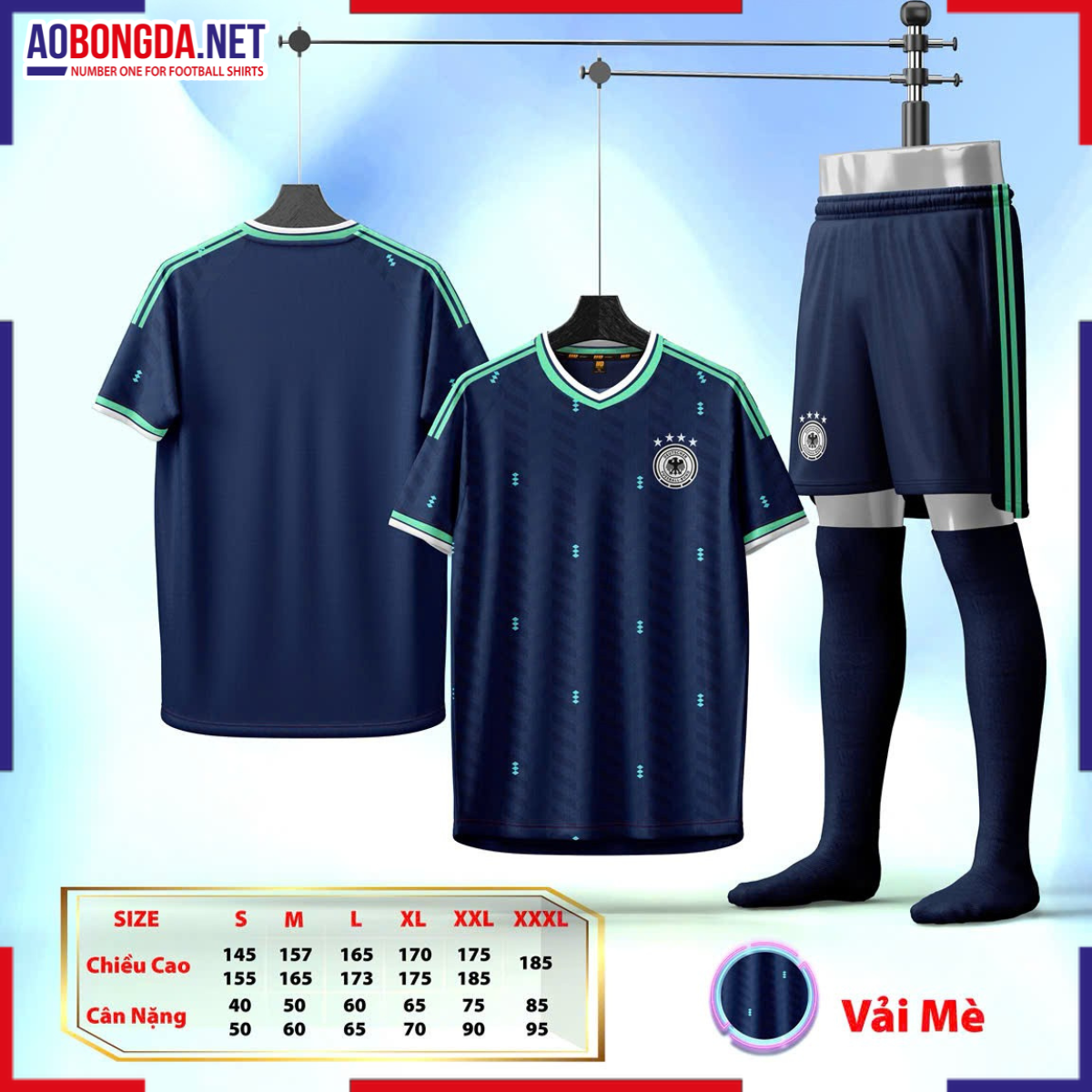 Áo Bóng Đá Đội Tuyển Đức Xanh Đen 2026 - 2027 mang phong cách hoài cổ xen lẫn hiện đại, tái hiện tinh thần chiến binh của "Cỗ xe tăng Đức" trên sân cỏ. Thiết kế phối màu trắng - hoạ tiết cùng màu quốc kì truyền thống giúp người mặc nổi bật nhưng vẫn giữ nét lịch lãm đặc trưng.