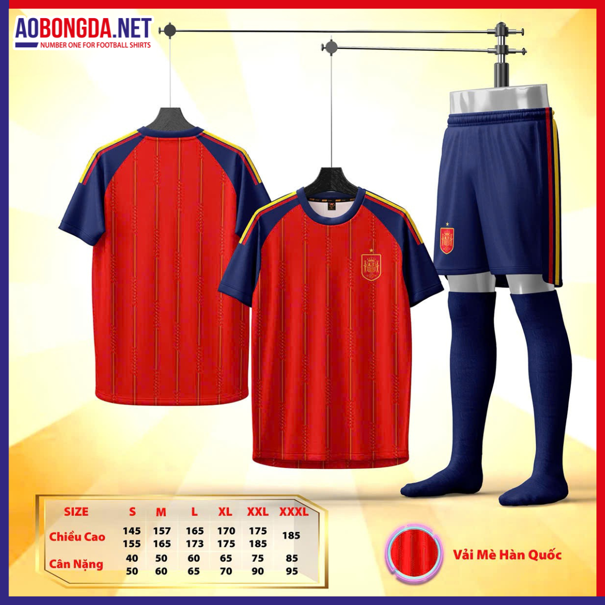 Áo bóng đá đội tuyển Tây Ban Nha mới nhất có đầy đủ các size từ S đến XXL, form áo phù hợp cho cả nam và nữ. Tham khảo bảng size áo dưới đây: