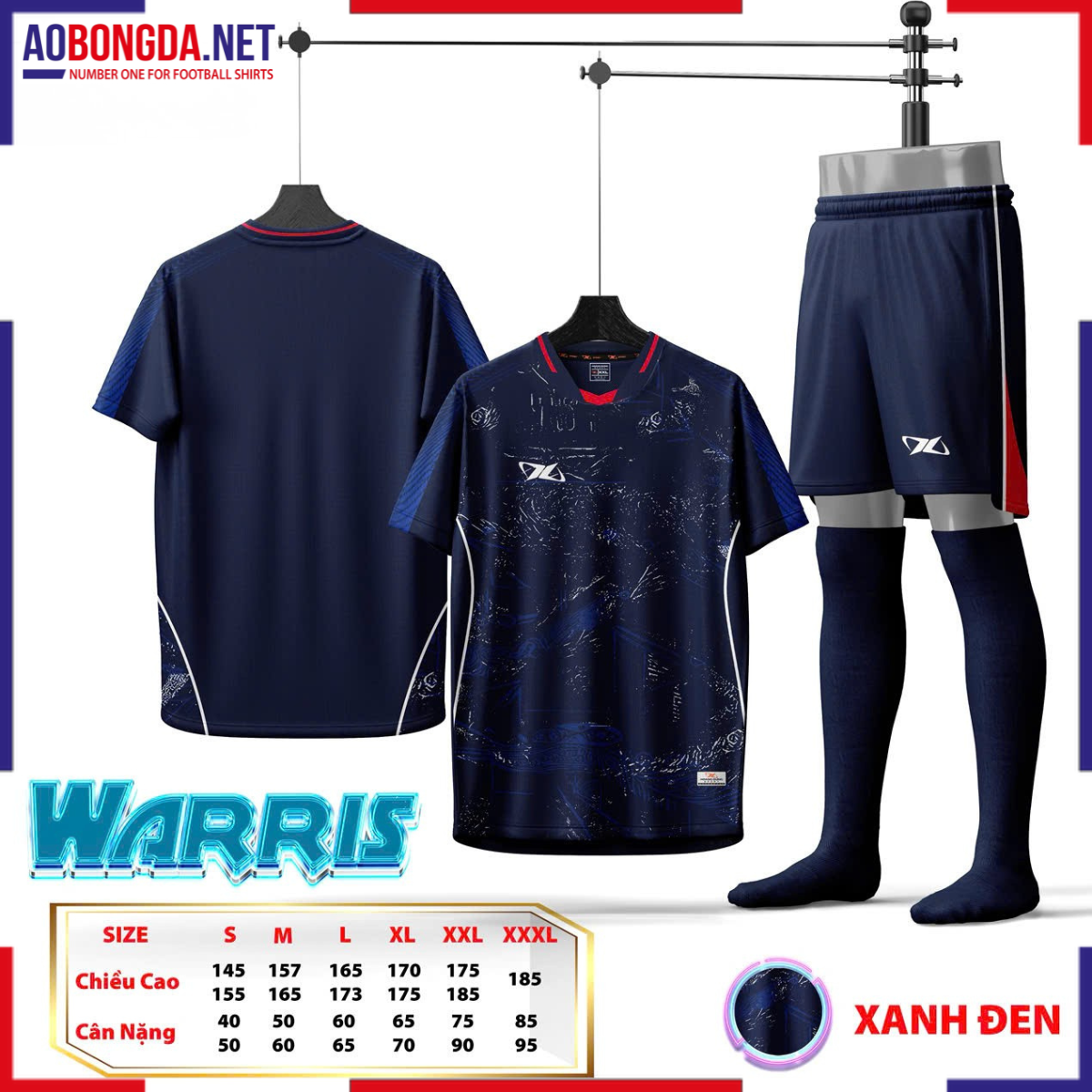 Áo Bóng Đá Không Logo HD Warris Xanh Đen