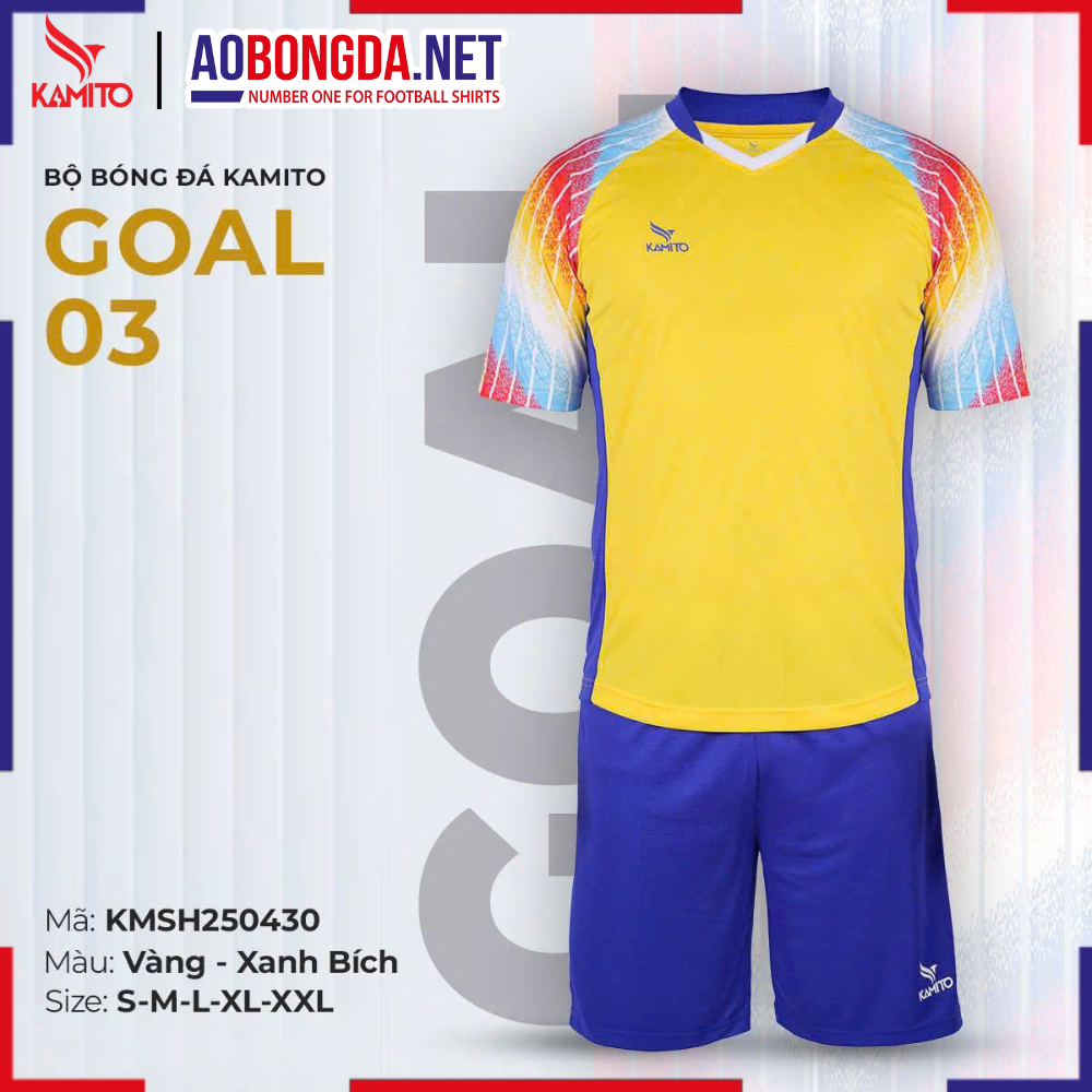 Bộ đồ bóng đá Kamito Goal 03 mang đến nhiều lựa chọn màu sắc: Đỏ, Trắng, Vàng, Đen, Xanh Bích cùng kích thước từ S – 2XL, phù hợp với mọi vóc dáng. Logo Kamito in sắc nét ở ngực phải tăng thêm sự chuyên nghiệp và đẳng cấp cho bộ trang phục.