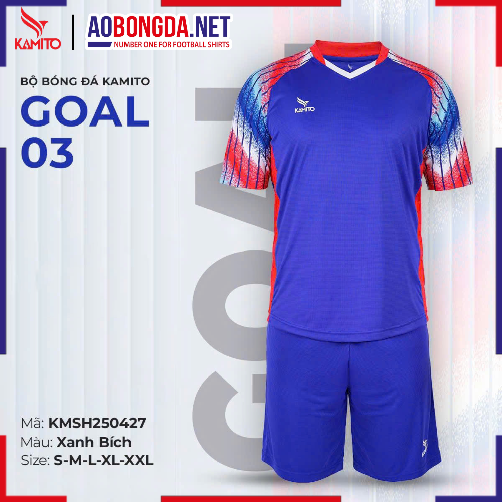 Bộ bóng đá Kamito Goal 03 là mẫu đồ thi đấu thế hệ mới, được thiết kế dành riêng cho những cầu thủ yêu thích sự thoải mái, năng động và nổi bật trên sân cỏ. Với chất liệu 100% Polyester cao cấp, sản phẩm mang đến độ co giãn, thoáng khí và khô nhanh vượt trội, giúp người mặc luôn dễ chịu ngay cả khi vận động với cường độ cao.