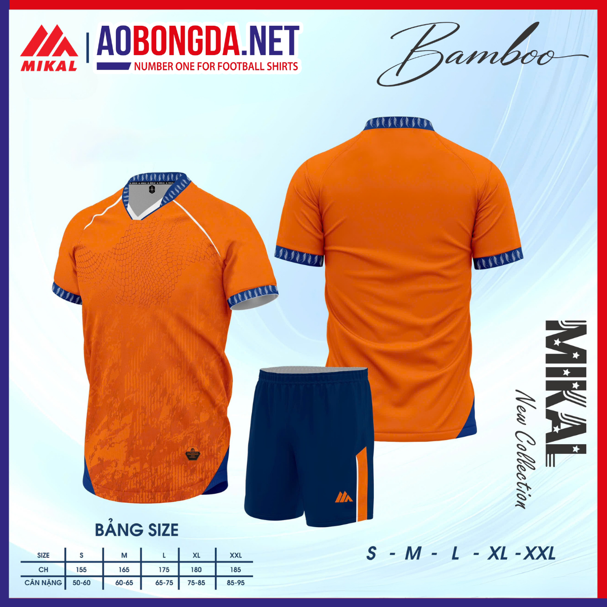 Áo Bóng Đá Không Logo Mikal K8 Bamboo Cam