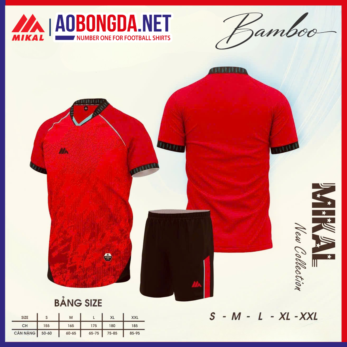 Áo Bóng Đá Không Logo Mikal K8 Bamboo Đỏ