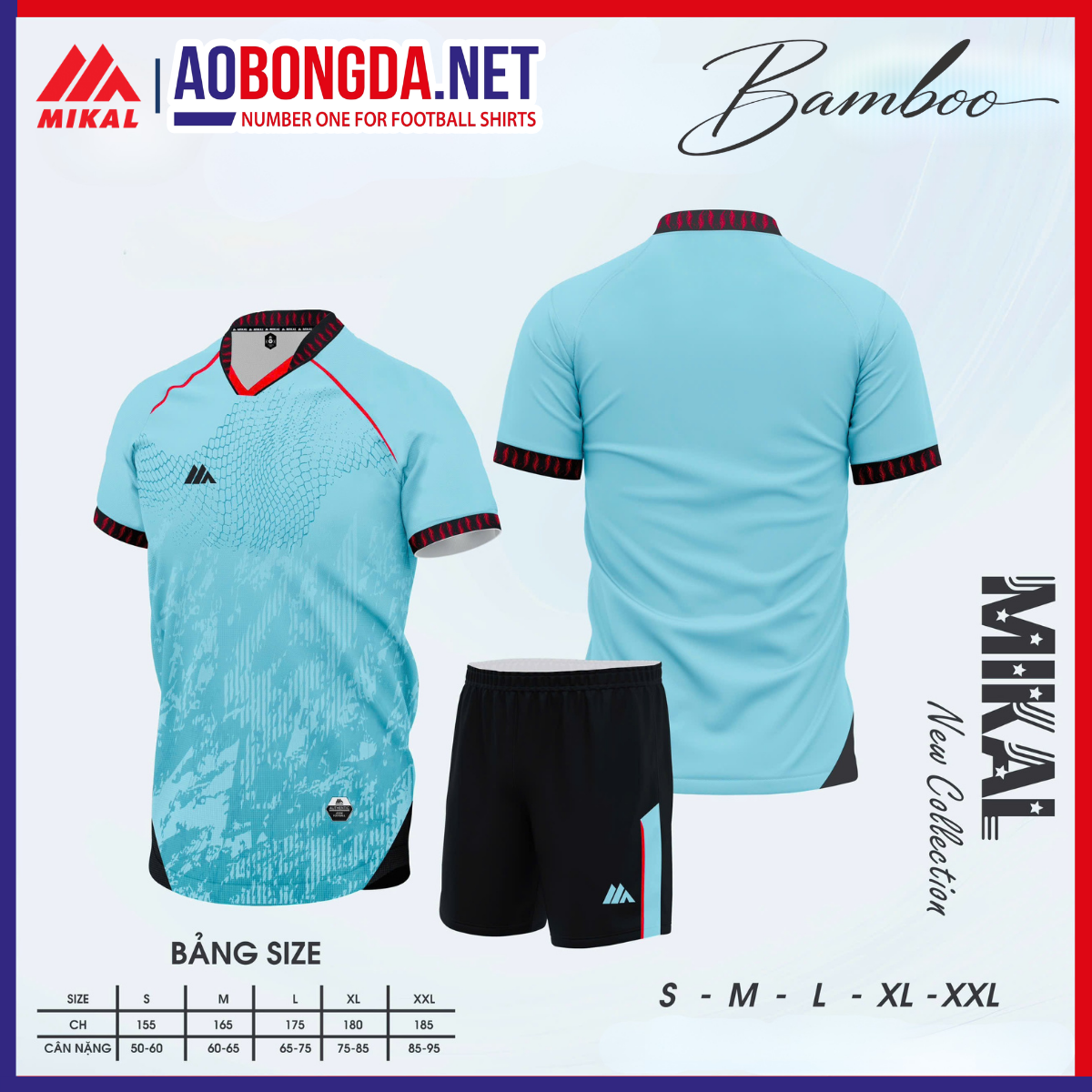 Áo Bóng Đá Không Logo Mikal K8 Bamboo Thiên Thanh