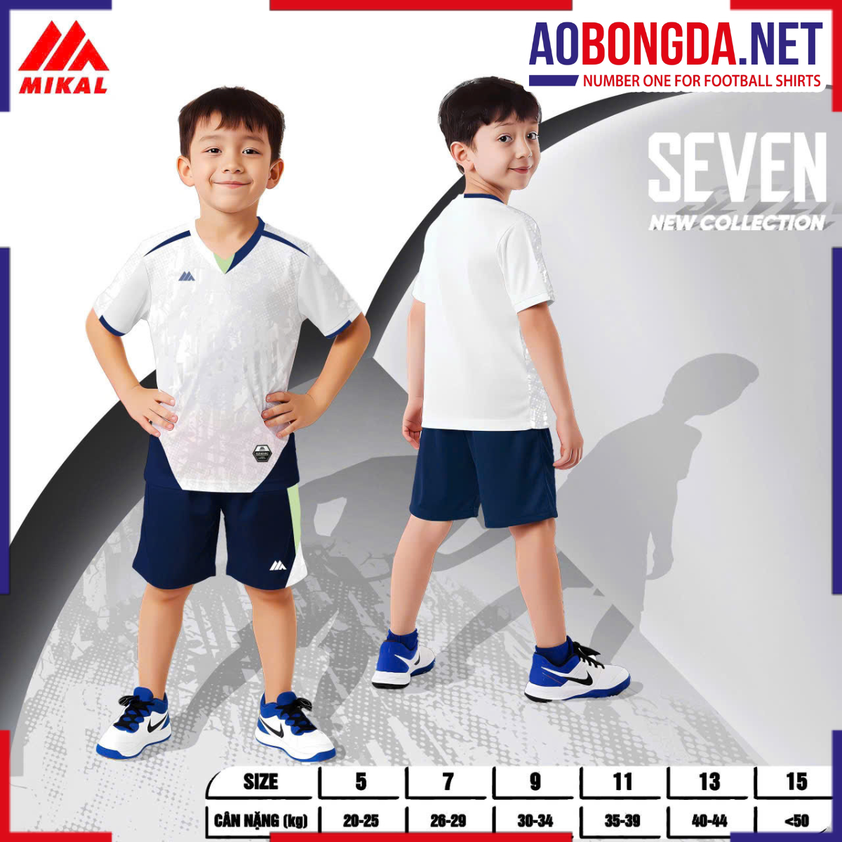 Áo Bóng Đá Không Logo Mikal Seven K7 Trẻ Em Trắng Xám