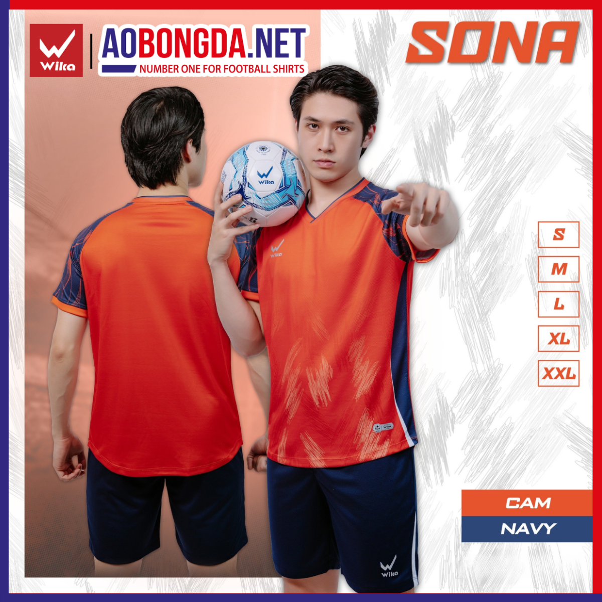 Áo Bóng Đá Không Logo Wika Sona Cam - Navy