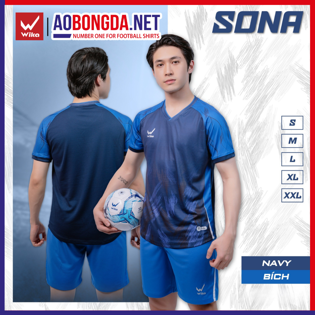 Áo Bóng Đá Không Logo Wika Sona Navy - Bích
