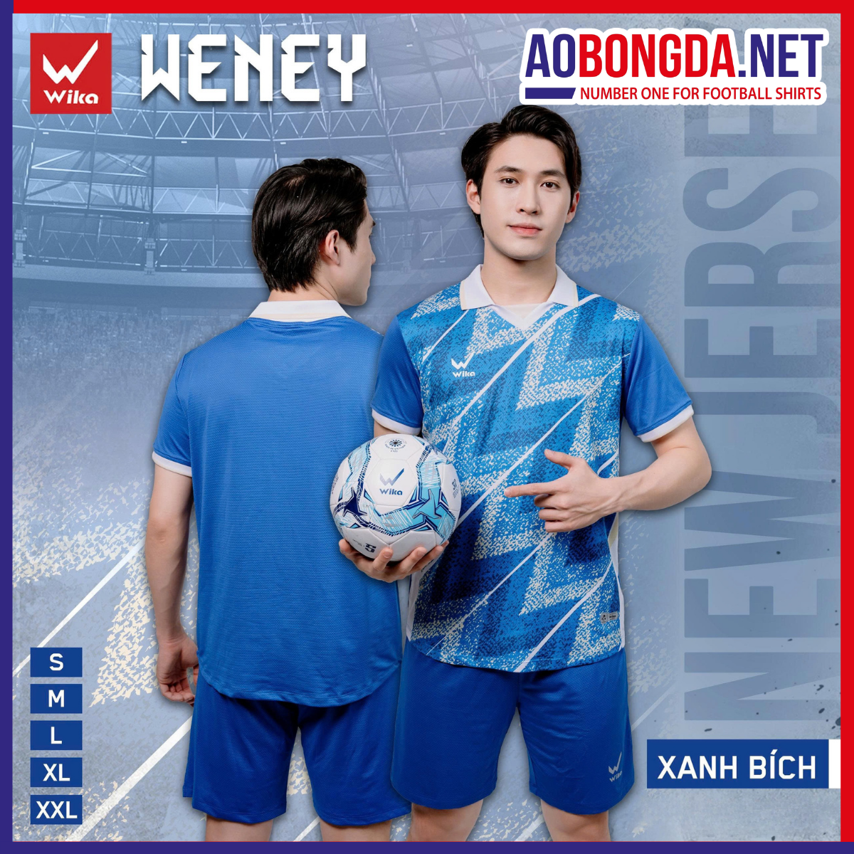 Áo Bóng Đá Không Logo Wika Weney Xanh Ya